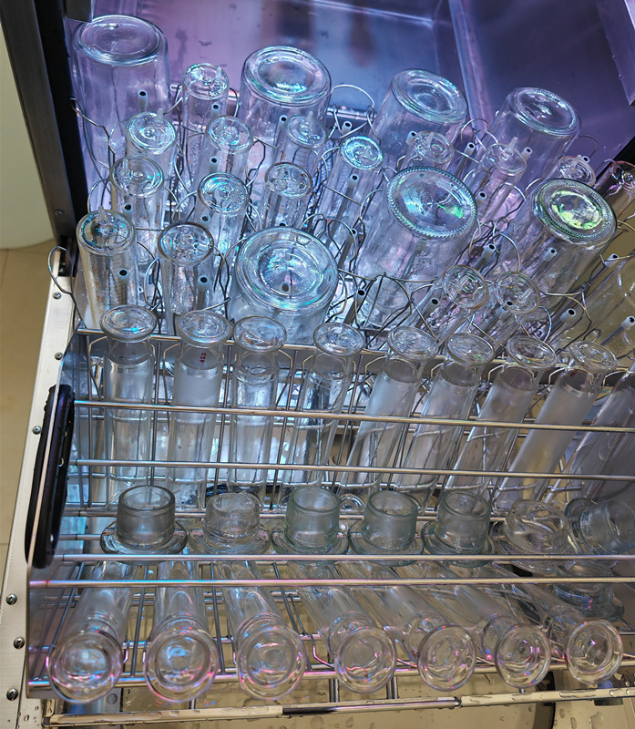 目前,實驗室自動清洗機就解決了這一些列痛點問題。洗瓶任務一鍵搞定,適配實驗室各類常見器皿,包括培養(yǎng)皿、玻片、移液管、消解罐、色譜瓶、試管、三角瓶、燒杯、燒瓶、量筒、容量瓶、西林瓶、血清瓶、漏斗等。模塊式組合籃架,可以同時洗不同種類的瓶皿,也支持特殊瓶皿籃架定制。解決日常洗瓶煩惱。